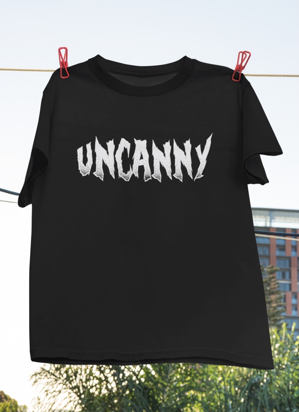 Uncanny T ShirtUNCANNYScreen print graphic at front.100% cottonImported$2525usdMedium1 left$2525usdLarge13 left$2525usdExtra Large13 left325usdPayUncanny T ShirtAdd to wishlist New wishlistShareShare on XShare on Facebook Copy linkCopy product URL